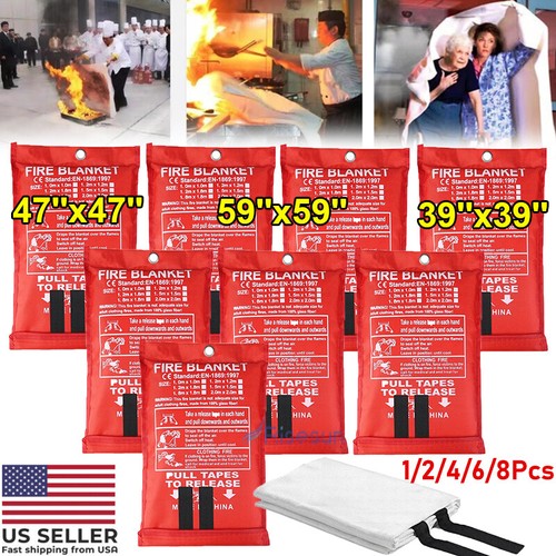 2/4/8 Pack Large Fire Blanket Fireproof For Home Kitchen Office Emergency Safety