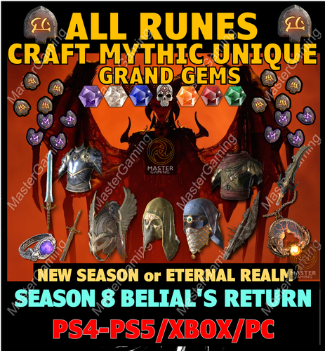 DIABLO 4 IV✨ALL RUNES✨RUNE SEASON BELIAL’S RETURN✴️RUNEWORDS✅PC PS XBOX✨SEASON 8