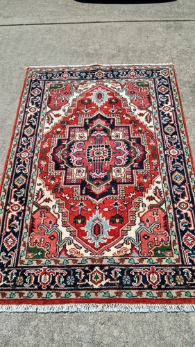 Hand Knotted Wool Heriz style accent rug 74″ x 49″