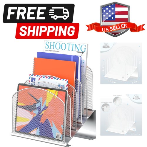 Inclined Metal Desk File Organizer 5 Sections Office Classroom Paper Holder