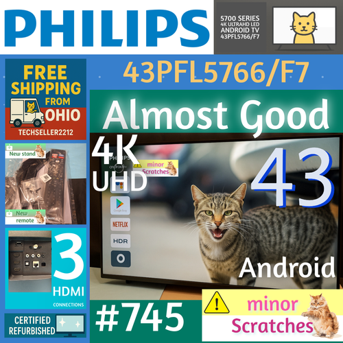 Philips 43″ Class 4K Ultra HD (2160p) Google Smart LED TV (43PFL5766/F7) Remote
