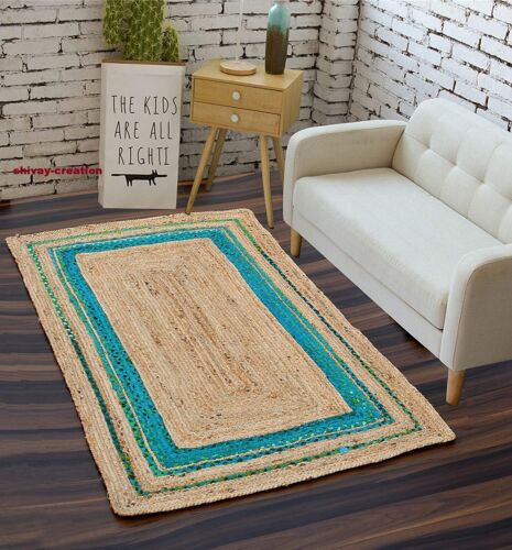 Rug Natural Jute & Cotton handmade reversible carpet modern look Floor decor rug