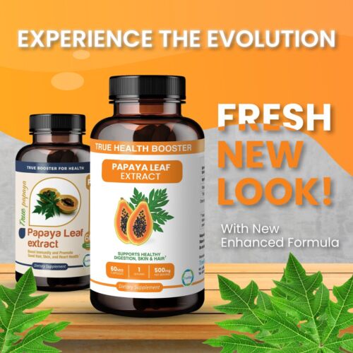 TrueMed Papaya Leaf Extract Support Immunity Good Hair, Skin 500 mg 60 capsules